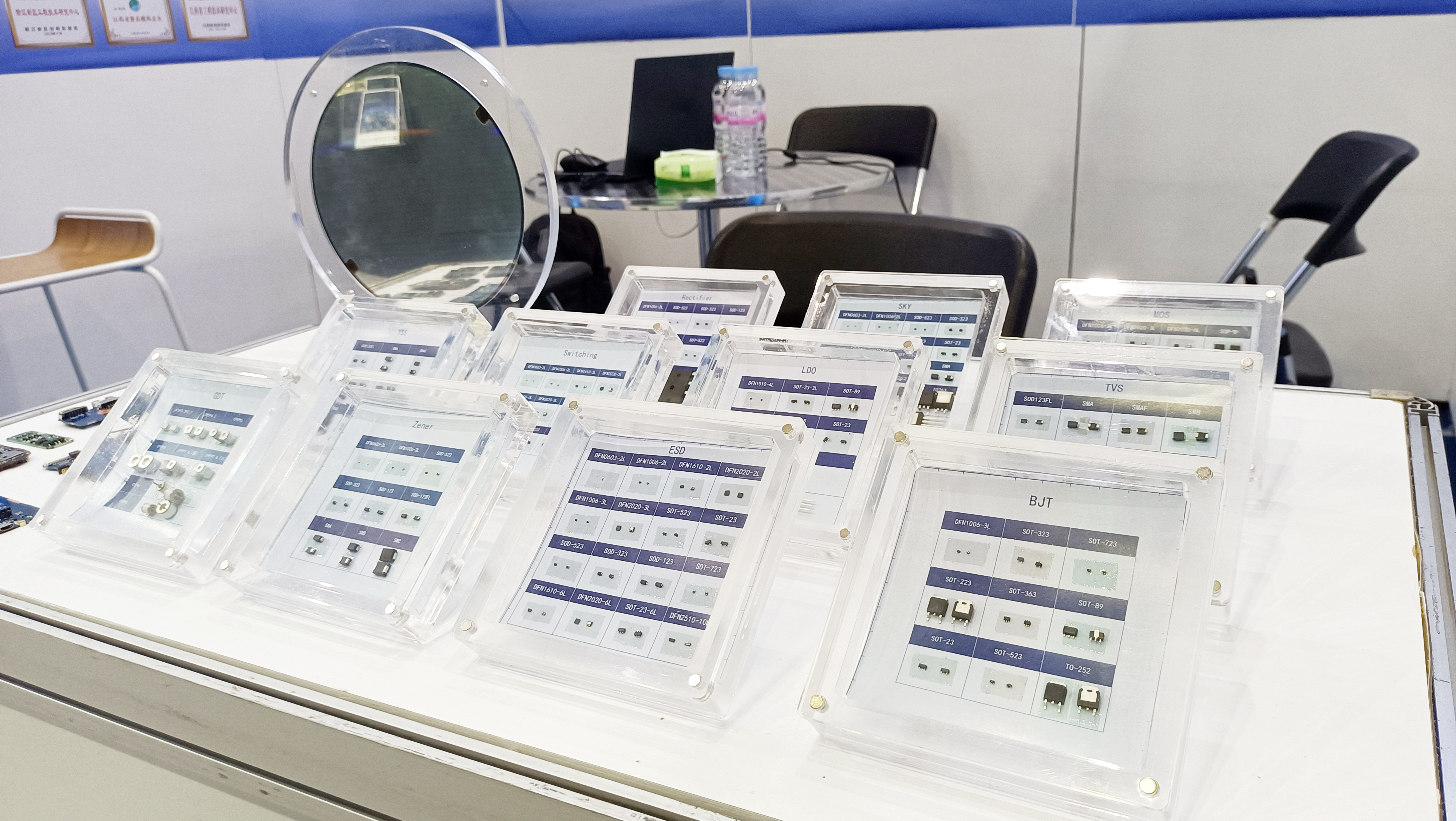 taptap点点微电子展示了多款主营产品,包括保护器件、二三极管和MOSFET、模拟IC等。